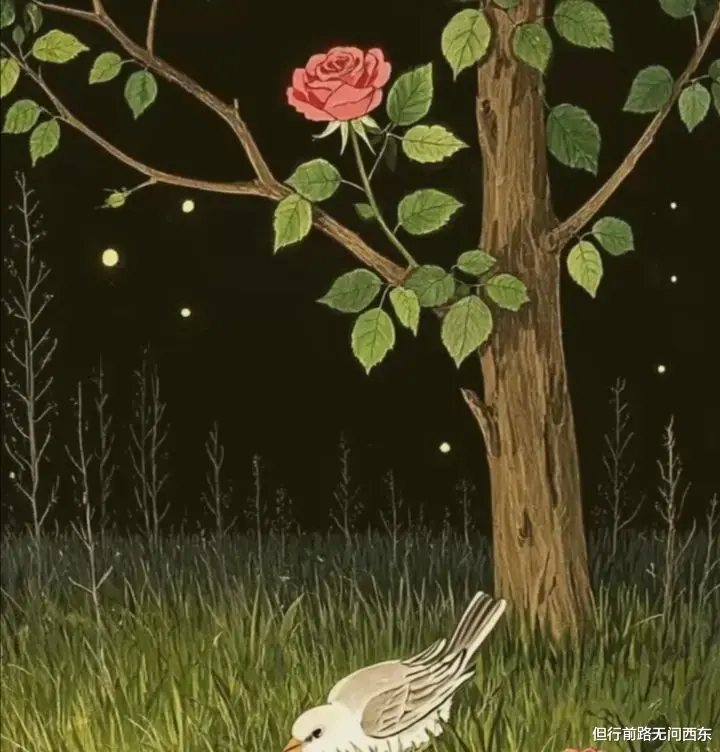 然而,学生听不懂夜莺的倾诉,反而喃喃自语,嘲讽鸟儿都是空有姿态,没有感情,更不会为人牺牲。