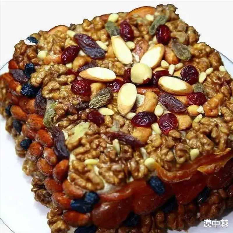 新疆切糕,作为一款极具特色的多材料混合美食,制作工艺精细,主要采用核桃仁、葡萄干、芝麻、枣等多种原料进行熬制。这些丰富的食材经过巧妙的融合,造就了切糕出众的口感和极高的营养价值。