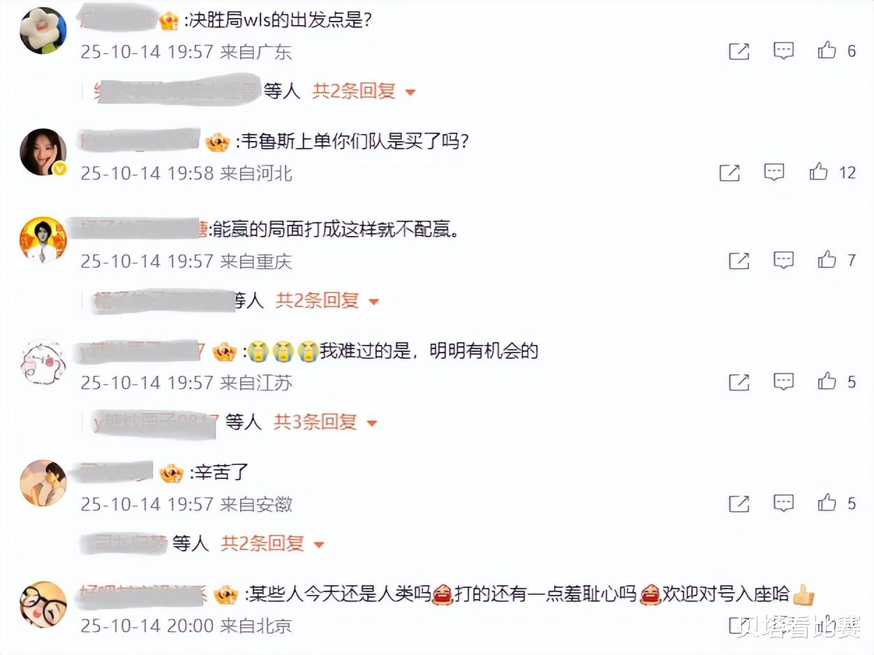 首先是IG官博炸了,被骂的最多的就是上单Theshy,不少粉丝怒喷:决胜局选上单韦鲁斯是什么意思?打得有任何羞耻心吗?也有粉丝直言:明明有机会获胜的,结果打成这样,才是最让人难过的,根本就不配赢!