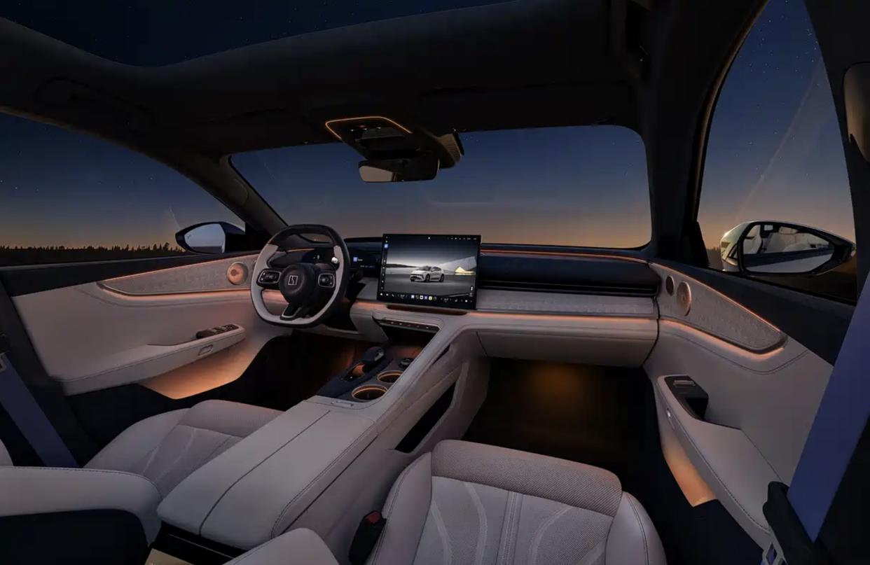 焕新极氪001采用了“星空音乐厅”为座舱概念。车内采用了分层式设计,大面积米白色真皮材质的铺陈,融合Monaco NAPPA头层真皮、千鸟格纹饰板等,大大提升这款车的高级感。同时,其无线充电区域覆盖麂皮绒,并在储物盒内置植绒、金属覆盖件采用PVD真空镀膜,增加整车内饰质感。车顶配备了超大尺寸的全景天窗和“浩瀚星空顶”,在LV分区调光天幕中嵌入了500颗独立星粒,厚度仅增加1毫米,不影响空间与视野,还具备87%的能量隔绝与近100%的紫外线阻隔能力。车内配备了16英寸3.5K超清向日葵中控屏、39.3英寸AR-HUD抬头显示、13.02英寸高清机长仪表与8英寸后排娱乐控制屏,可以实现多屏联动。