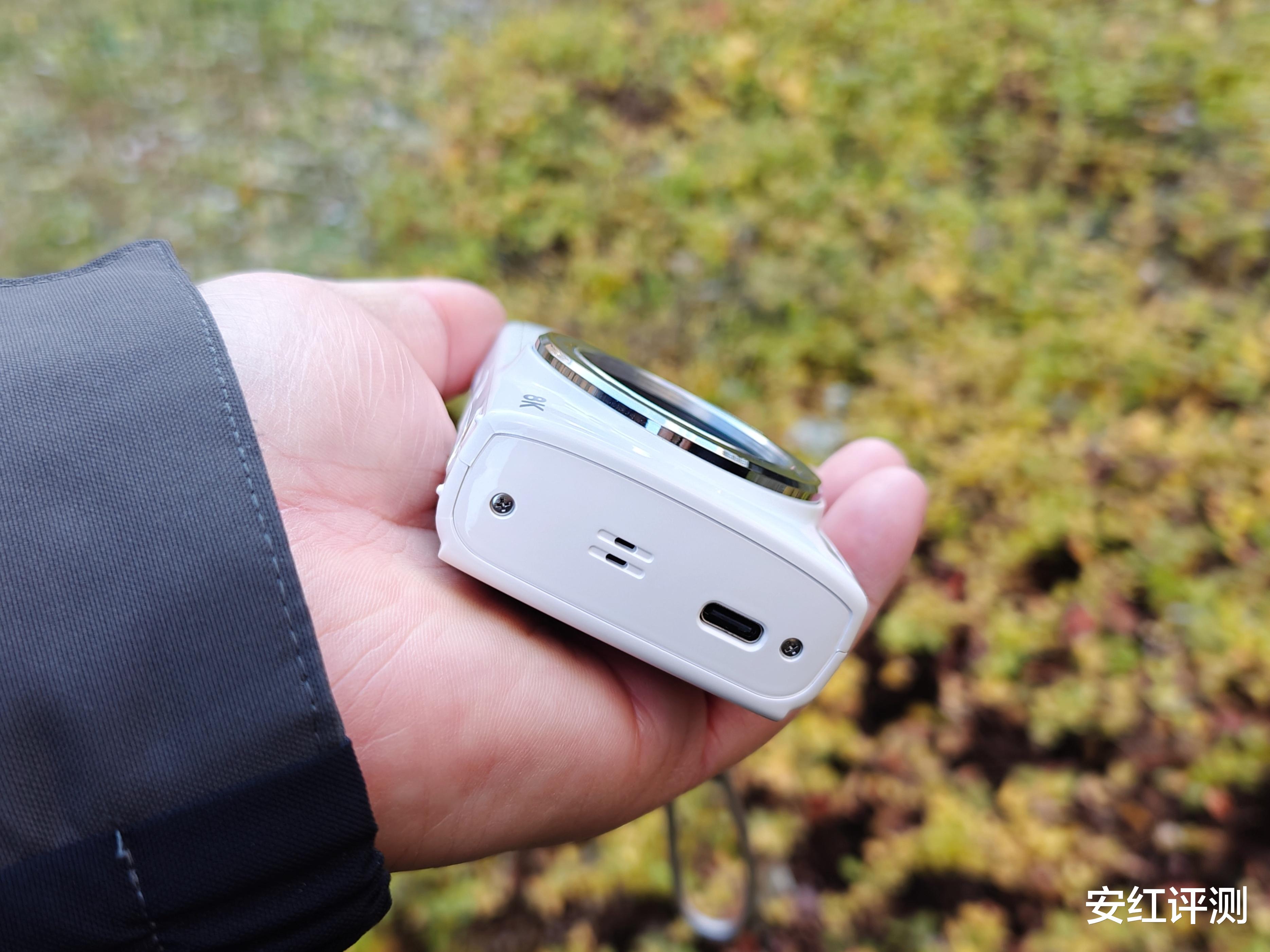 机身左侧设有麦克风、扬声器和Type-C 充电传输两用口,而在右侧设计了挂绳孔,使用挂绳后携带更加方便安全。