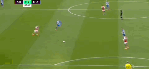 上半场比赛双方踢得较为沉闷,第19分钟,马丁内利受伤下场,特罗萨德登场对阵旧主。第30分钟,扎卡分球,特罗萨德爆射击中横梁弹出,错失领先机会!半场补时阶段,萨卡的抽射擦柱而出!布莱顿方面,三苫熏等人通过个人能力也制造了一定威胁。