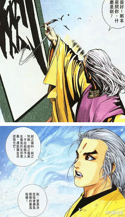 漫画中,作者特意安排了一段,少年龙元与帝释天论剑的故事,这段故事中,两个人各自阐释了自己对剑的理解,龙儿将剑视为自己的精神支柱,愿意将一生都奉献给剑,帝释天则是将剑视为一种工具,能助他杀敌,就是好剑,就是好剑法。