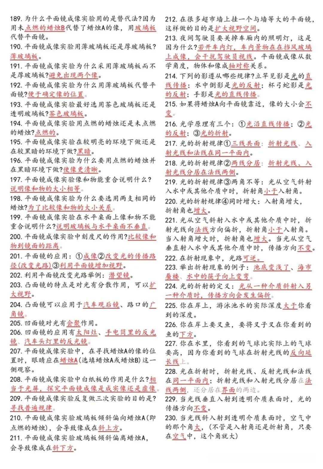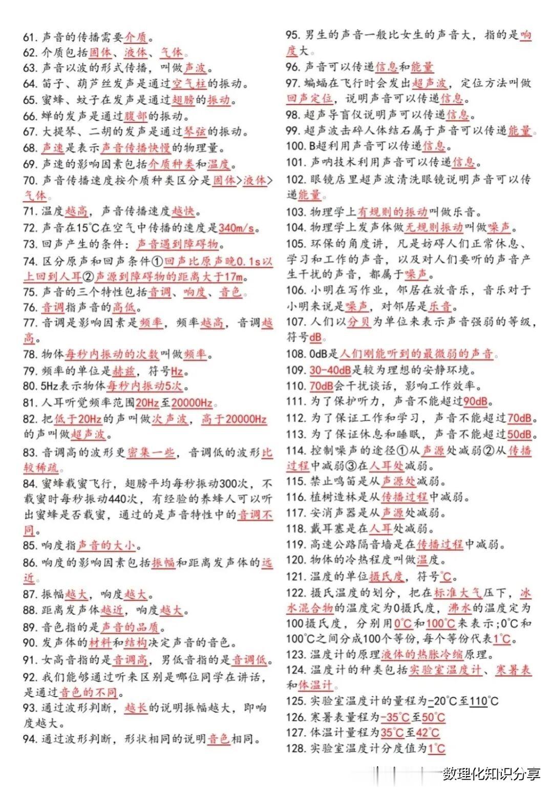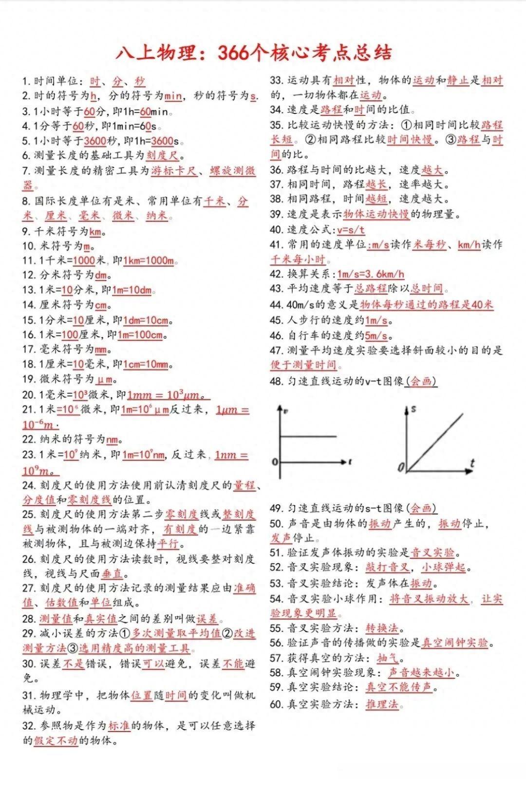 八年级上册物理366个核心考点知识点汇总