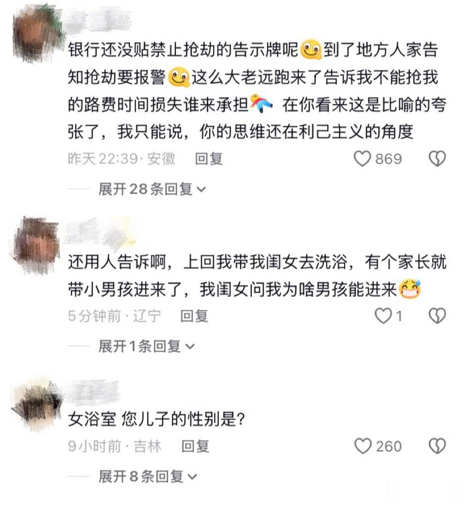 反对声音同样强烈:“单亲妈妈不容易,但带男孩进女浴室确实会给其他顾客造成困扰。”一位女性网友直言:“我会非常介意,这是基本的隐私权。”
