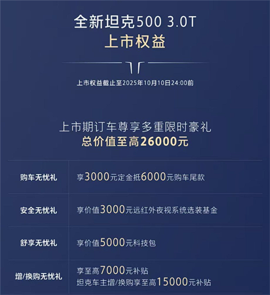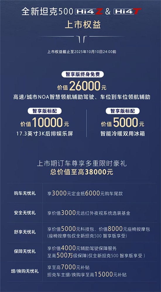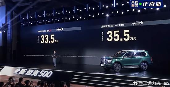 全新坦克500上市,分为燃油、Hi4-T、Hi4-Z三种动力,售价区间33.5-37.5万元,并拥有不同的上市权益,具体可看图了解。