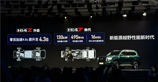 动力方面依,Hi4-T版本采用的是2.0T发动机+单电机+9HAT变速箱的组合,系统综合功率为300千瓦,电池容量37.1kWh,WLTC工况下的纯电续航里程110公里,并配备非解耦四驱结构,主打强悍越野性能。