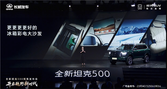 让人略感意外的是,虽然坦克500本身是一台硬派越野车,但豪华和舒适也是它的特色,此次新车一大变化就是配备了当下主流的冰箱、彩电、大沙发。