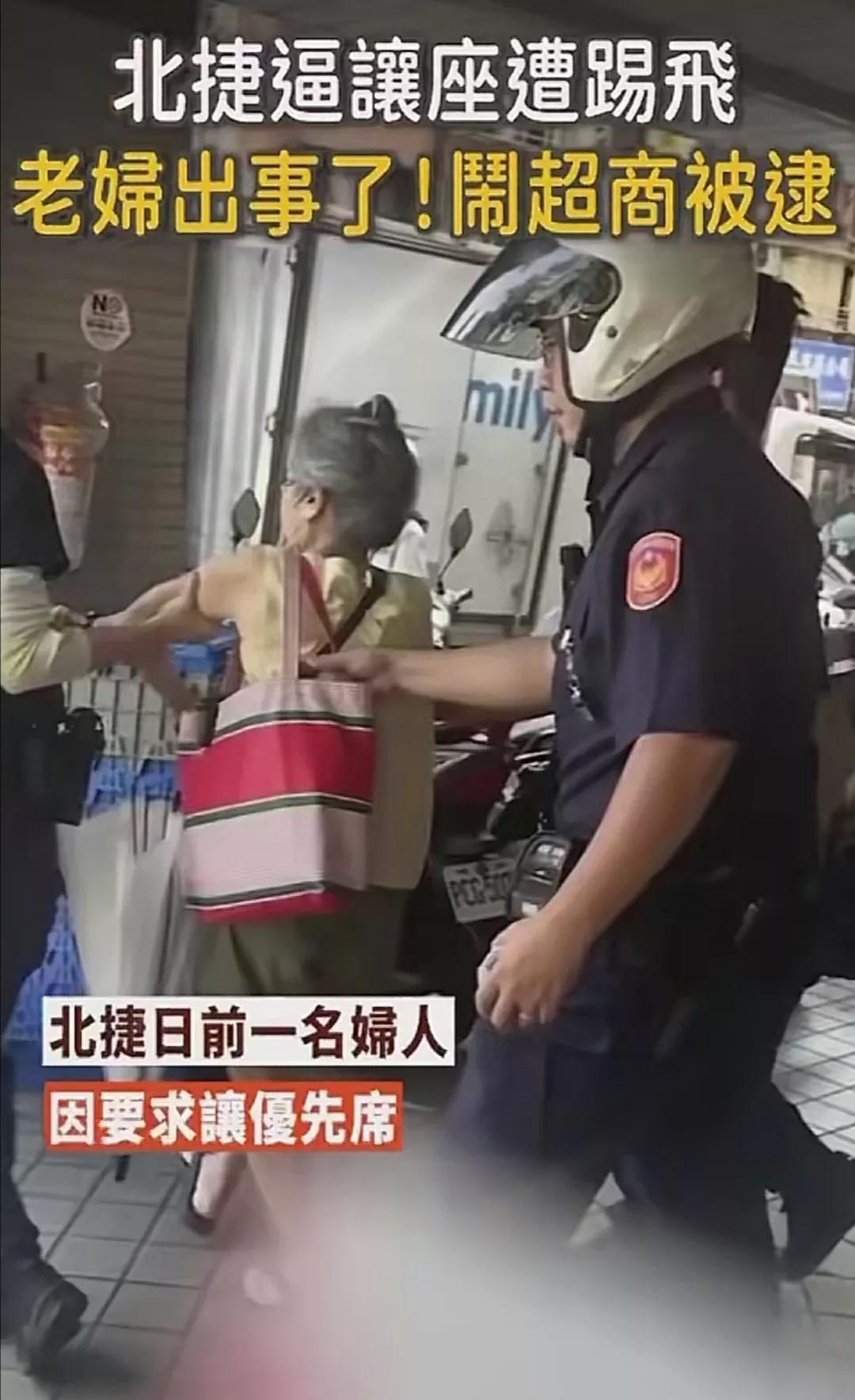 9月29日下午,台北捷运淡水信义线的列车上,一位73岁的曾姓阿婆,因为一个年轻人坐在“优先席”(以前叫博爱座)上,当场就炸了。她抄起手里的袋子,对着年轻人“啪、啪”就是好几下。年轻人也没惯着,噌地站起来,一脚就把阿婆踹到对面空座位上了。阿婆当即大喊报警,这段视频传到网上后,直接引爆了舆论。