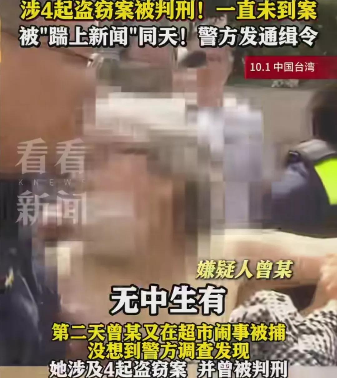本以为这就是个普通的让座冲突,顶多是阿婆没理还动手,年轻人防卫过当。结果10月1日上午,台北市大同区一家超市里,这曾阿婆又闹事了,被警察当场逮住。一查才知道,她竟然是个通缉犯!涉及4起盗窃案,早就被判刑了,就是一直没去报到,成了在逃人员。