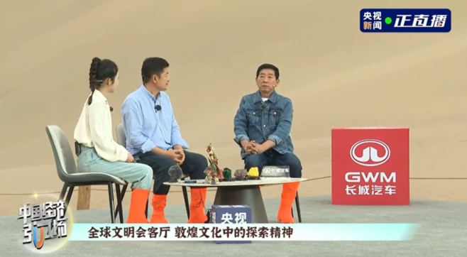 9月19日,央视新闻《中国经济引力场》栏目走进敦煌。敦煌市文物保护中心副主任、敦煌博物馆副馆长张春生,长城汽车董事长魏建军与央视主持人李京京展开横跨千年的时空对话,从玉门关的丝路要塞到莫高窟的艺术瑰宝,从汉长城的千年守护到治沙一线的当代坚守,在一场跨越千年的精神接力与文化奔赴中,探寻敦煌“万里精神”,诠释现代企业责任担当。