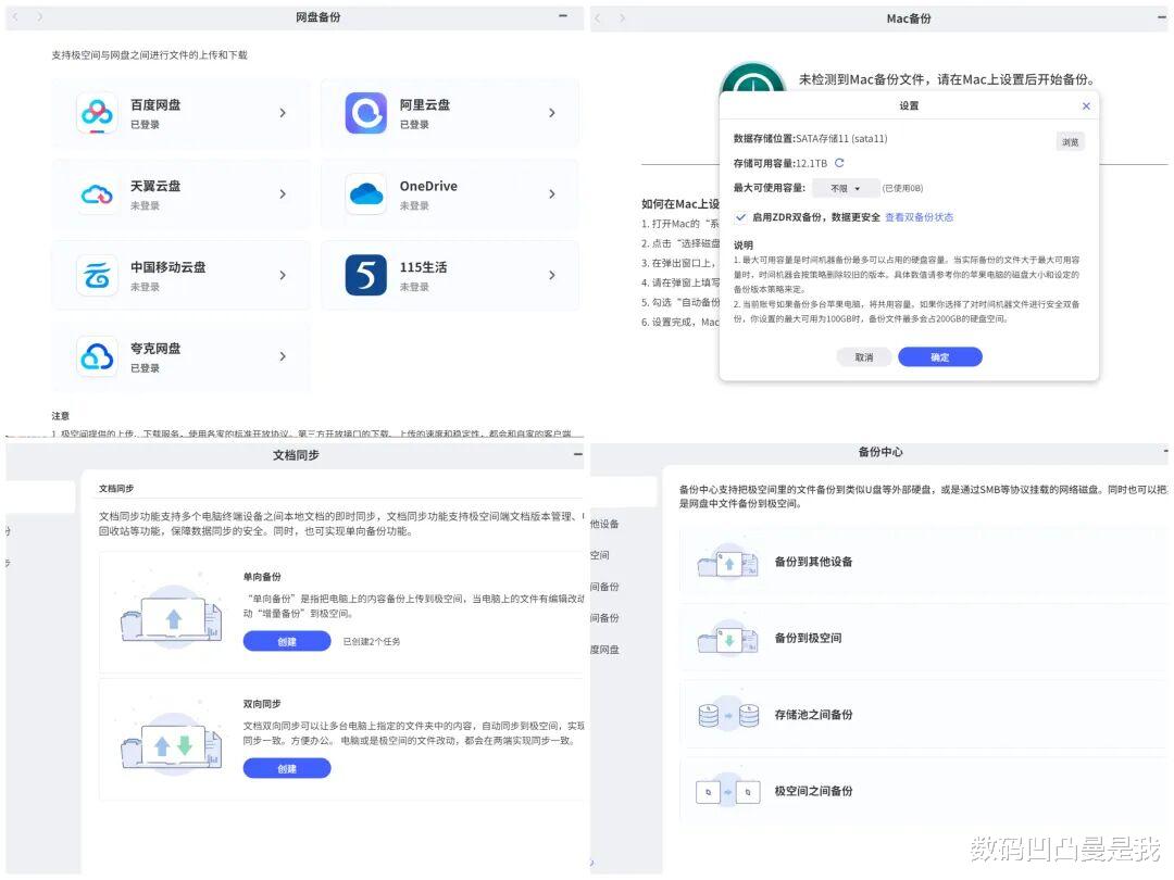 ①极空间Z4pro+:多端备份,办公娱乐都能行如果你想要一台功能全面、能够满足日常娱乐办公且性能不差价格也不太贵的NAS,那极空间Z4Pro+可以说是非常合适的选择,因为它除了支持136TB超大存储扩展(4*SATA+2*M.2)及机身配备丰富的接口外,还适配苹果、安卓、Windows多系统。