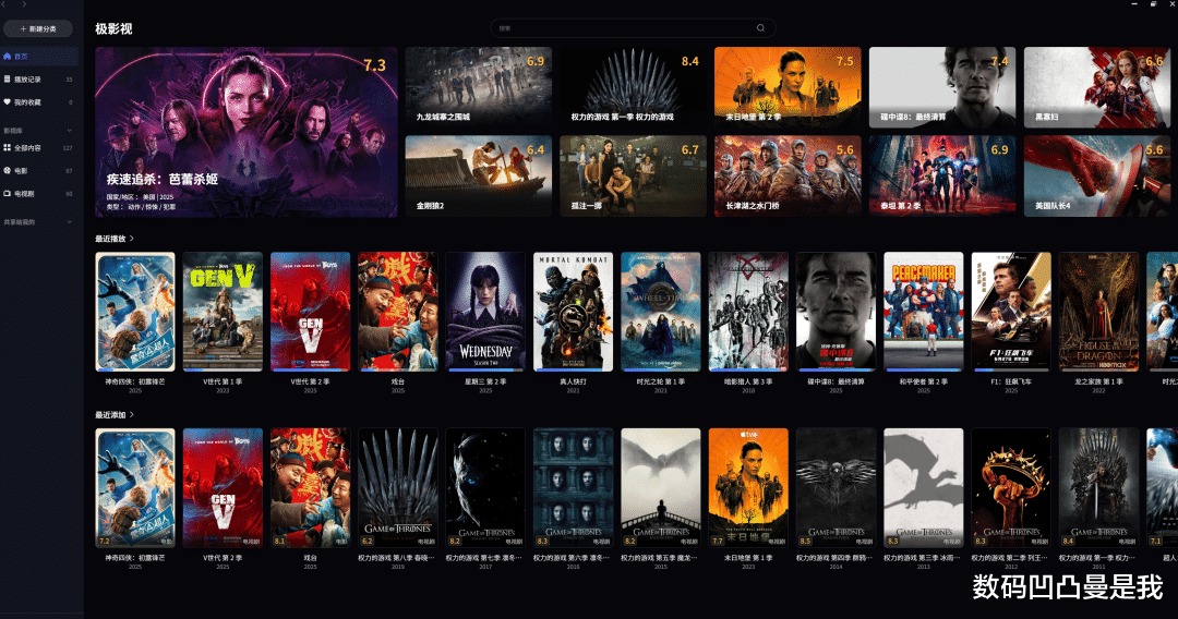 在影音方面,极影视的智能刮削可能是所有NAS中体验最好的,因为它不仅识别率高还不需要复杂的配置和额外的付费,刮削的信息除了海报封面还有剧情介绍、主要颜值人员、评分等,生成的海报墙也支持按照画质、年份、类型进行筛选。