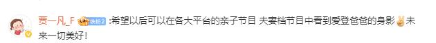 贾一凡也发文表示:希望以后可以在各大平台的亲子节目、夫妻档节目中看到爱登爸爸的身影!未来一切美好!