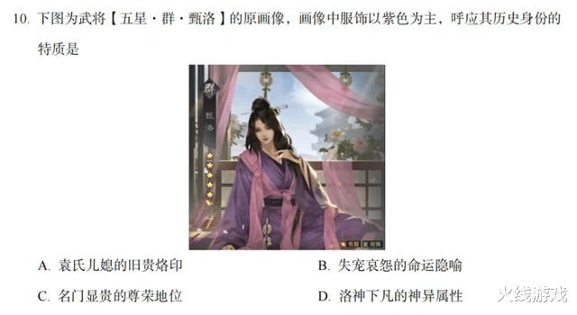 例如开头的选择题,他们就列出了数张《率土之滨》中较为经典的武将原画,让大家分析其中表达的含义。要是不对三国有所了解,知道这些人物的核心典故,还真不一定答得上来。