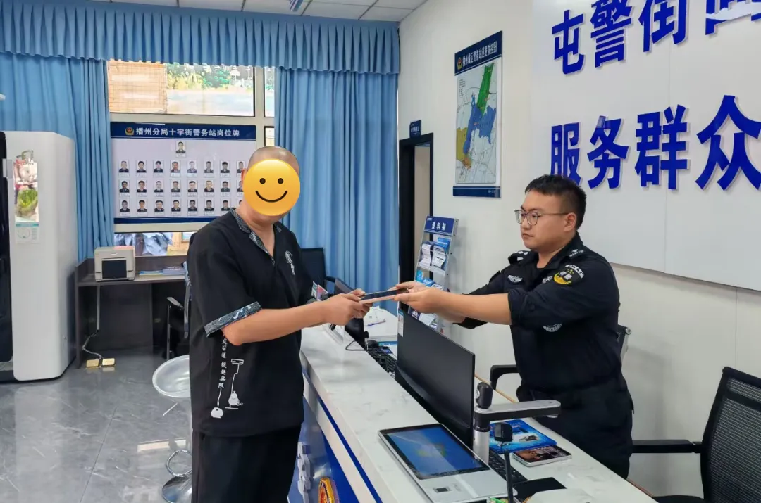 经过一番有序的查找,特警队员终于成功联系上失主。当得知手机被巡逻的特警队员拾到时,失主在电话那头激动得声音都有些颤抖,连连表示会尽快赶到警务站取回手机。当日14时许,失主匆匆赶到警务站,特警队员核对身份后将手机交到失主手中,失主紧紧握住他的手,眼中满是感激,同时,对警务站工作人员认真负责的态度表示衷心感谢。