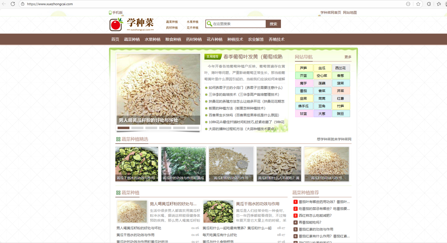 一个教你种任何植物的网站,里面包含了蔬菜、水果、花卉、药材等各种植物的种植方法和注意要点,一些常见的农业问题也有解决方案,甚至连鸡鸭、养猪的技术都有,点击右上角的网站地图就能看到所有的品类,也可以直接搜索想要了解的植物,例如草莓,它就会把对应的文章列出来,方便查阅,快去试试吧。