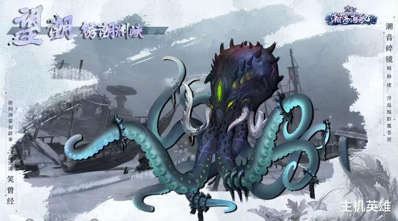 随后是望潮,这位北海老贪商被龙主沧渊囚于天井,腕足粗如巨蟒,惯用幻术制造宝藏假象诱杀过往旅人。如今却终日与无法触及的秘宝相伴,怨念深重,机制很可能围绕幻象与范围控制,贪念成囚!