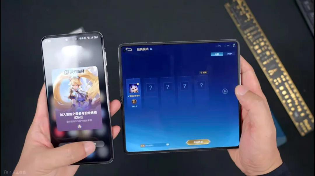 大屏适配也更成熟了。《金铲铲之战》的棋盘很大,以前可能需要放大缩小、频繁拖动,现在在三折叠手机上,棋盘操作区域变得更大了,手指滑动更加顺手。