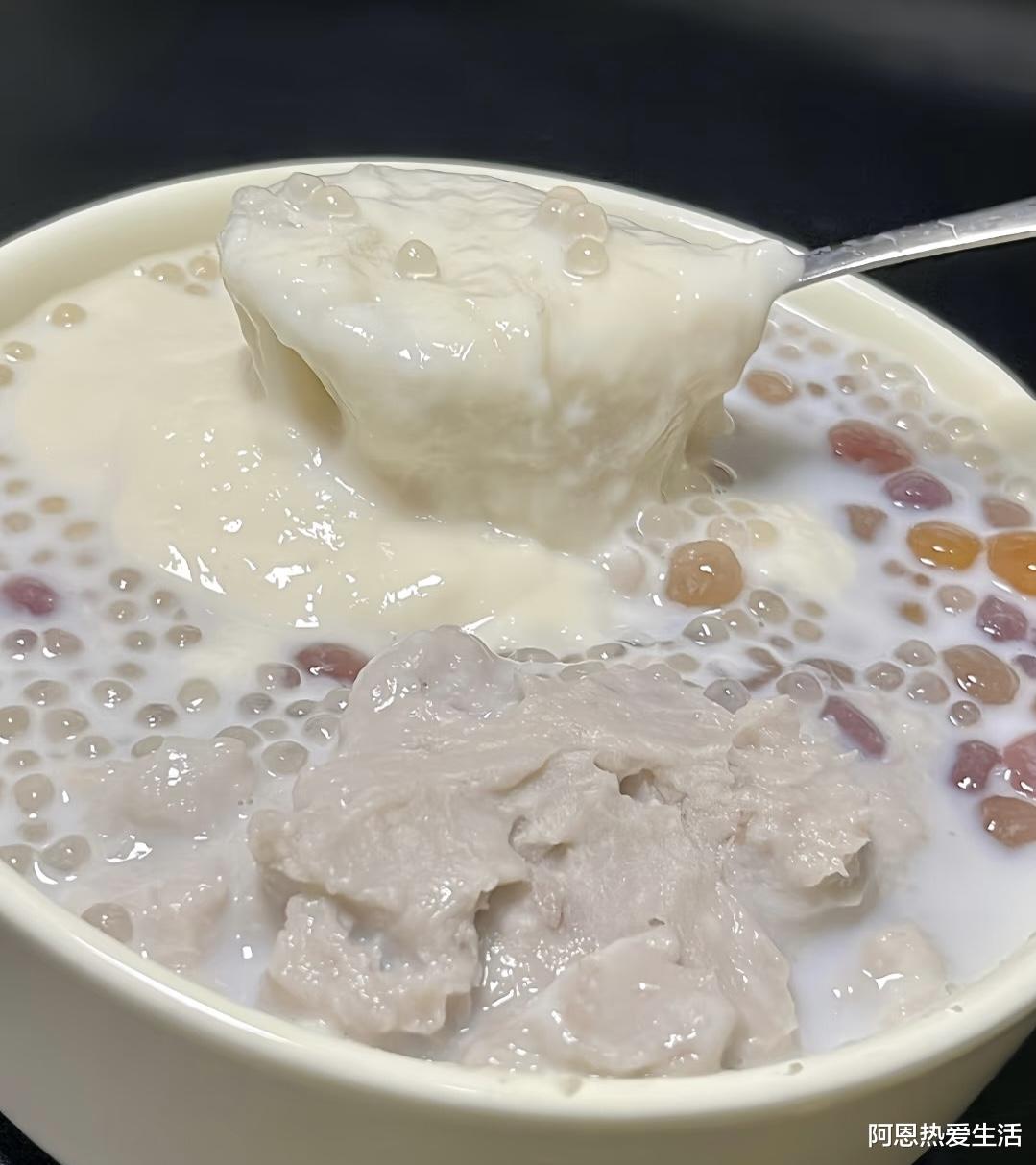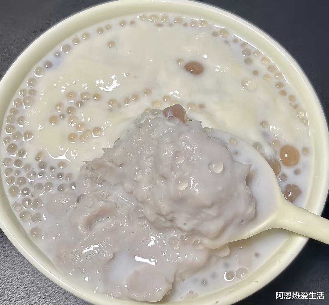 奶fufu的芋泥在舌尖化开,Q弹的芋圆与西米在齿间跳舞,这碗甜品简直是芋泥脑袋的终极幸福!窗外的雨滴答作响,我站在厨房里