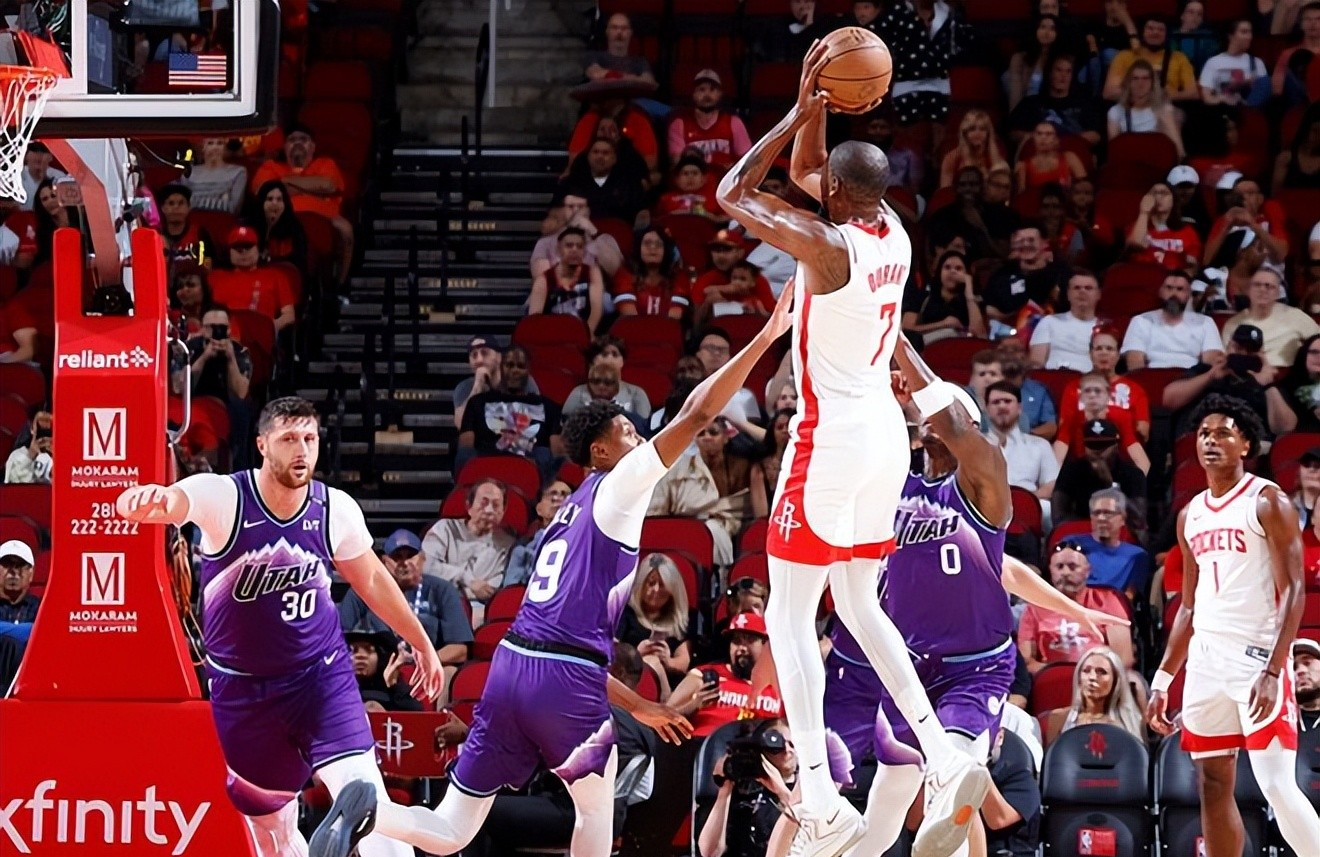 北京时间10月9日,NBA季前赛仍在火热进行中,休斯顿火箭也在主场迎来了第二个对手犹他爵士,备受瞩目的杜兰特将迎来他在火箭的首秀,此役除了亚当斯轮休外,其余球员悉数出战,算得上是新赛季火箭全员亮相的一战。