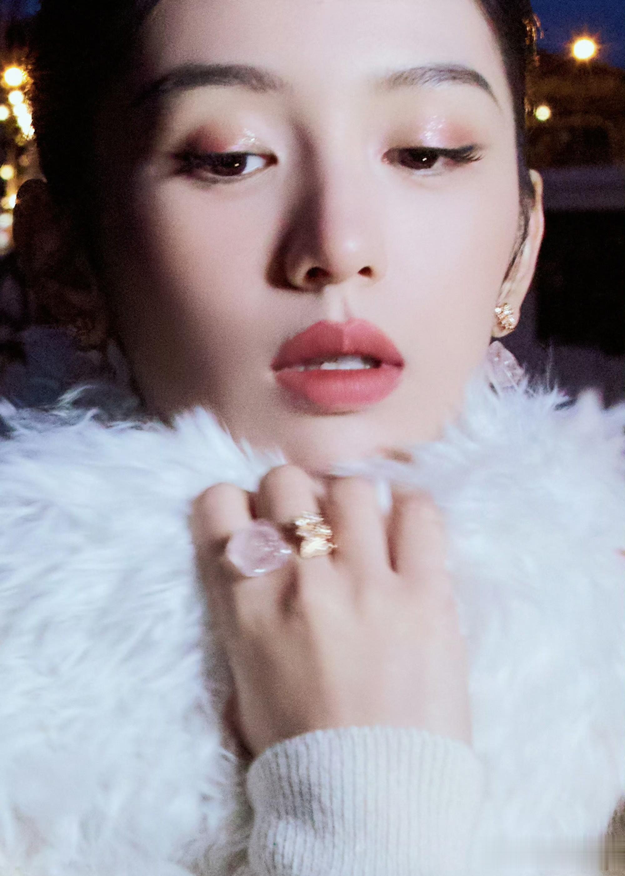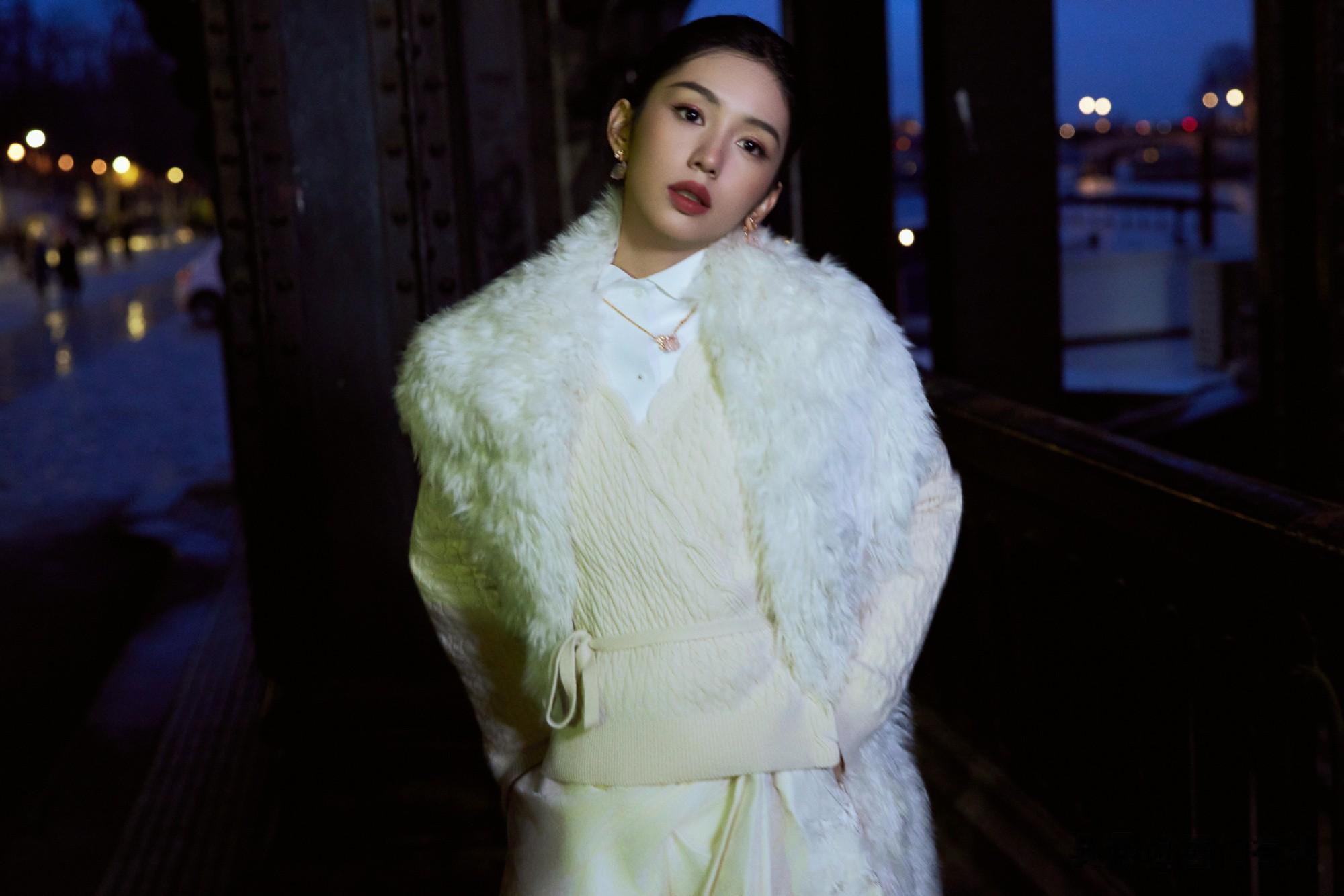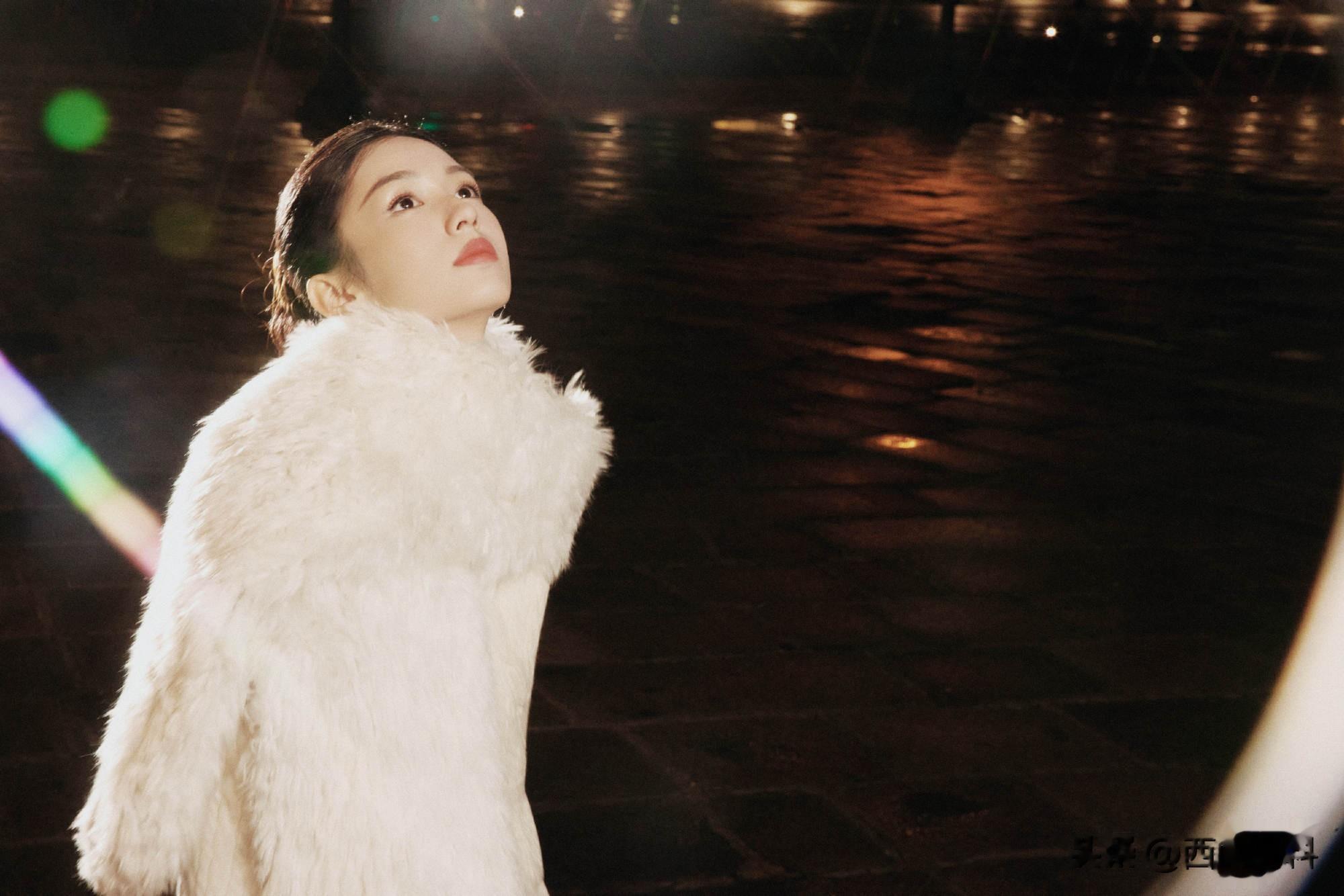 简约剪裁与她的冷白肤色相得益彰,碰撞出清冷氛围,被赞为“凝霜带雪的冬日白玫瑰”。