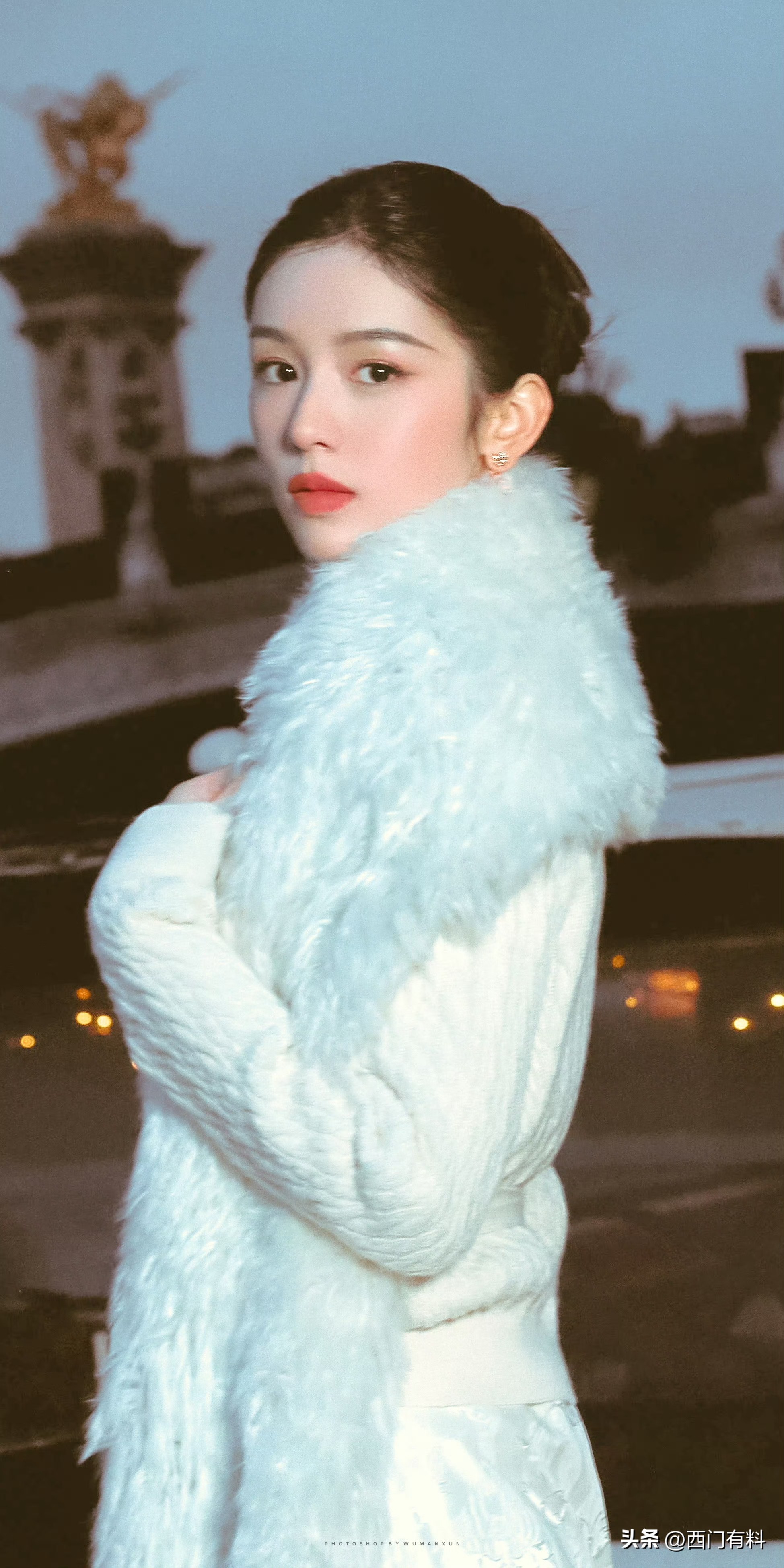 周也巴黎高定时装周造型惊艳全网,冬日白玫瑰与内娱免检大光明发型成焦点!