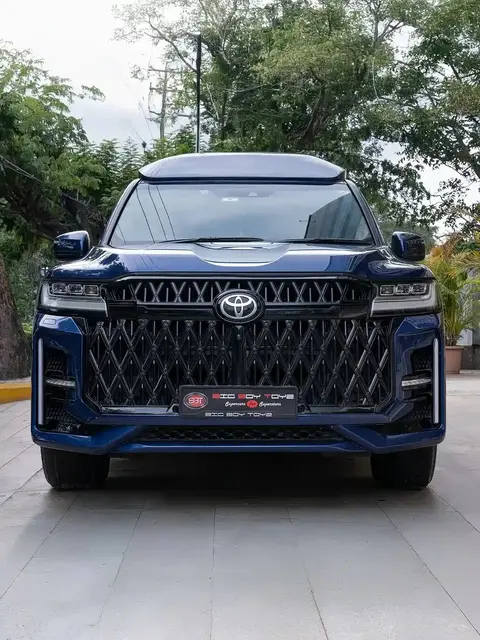 前脸延续经典“丰田” heritage格栅,超大尺寸的菱形镀铬中网气场十足,矩形LED大灯灵感源自经典FJ 62,内部双光源头灯支持黄白双色切换,既能应对恶劣天气又显精致。20寸锻造轮毂搭配红色卡钳,原厂TRD钛合金护板加持,既有硬派越野的粗犷,又藏着豪华车的细节质感。