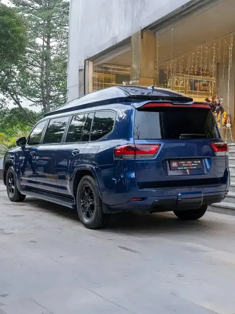 兰德酷路泽加长版的外观,用“霸气侧漏”形容毫不夸张。基于原厂车型加长300mm以上,车身长度直奔5.3米,轴距突破3.2米,比普通版足足多了一排座椅的空间,侧面线条舒展流畅,搭配增高的车顶设计,威严感直接拉满。