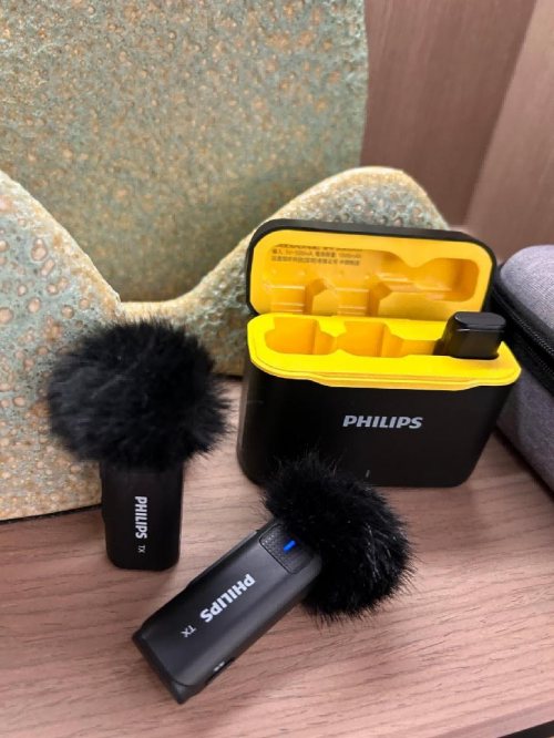 飞利浦DLM3543C发射器仅15克,别在衣领上几乎没有负重感,磁吸背夹吸附牢固,日常走动不易移位。但磁吸力度偏大,摘取时容易勾住衣物纤维,多次使用后可能导致衣物起球。接收器虽然小巧,但边缘棱角稍显分明,长时间握持或放置在口袋里,会有轻微硌手感。软质防风毛套贴合度较好,不过拆卸清洗后容易变形,影响后续使用体验。