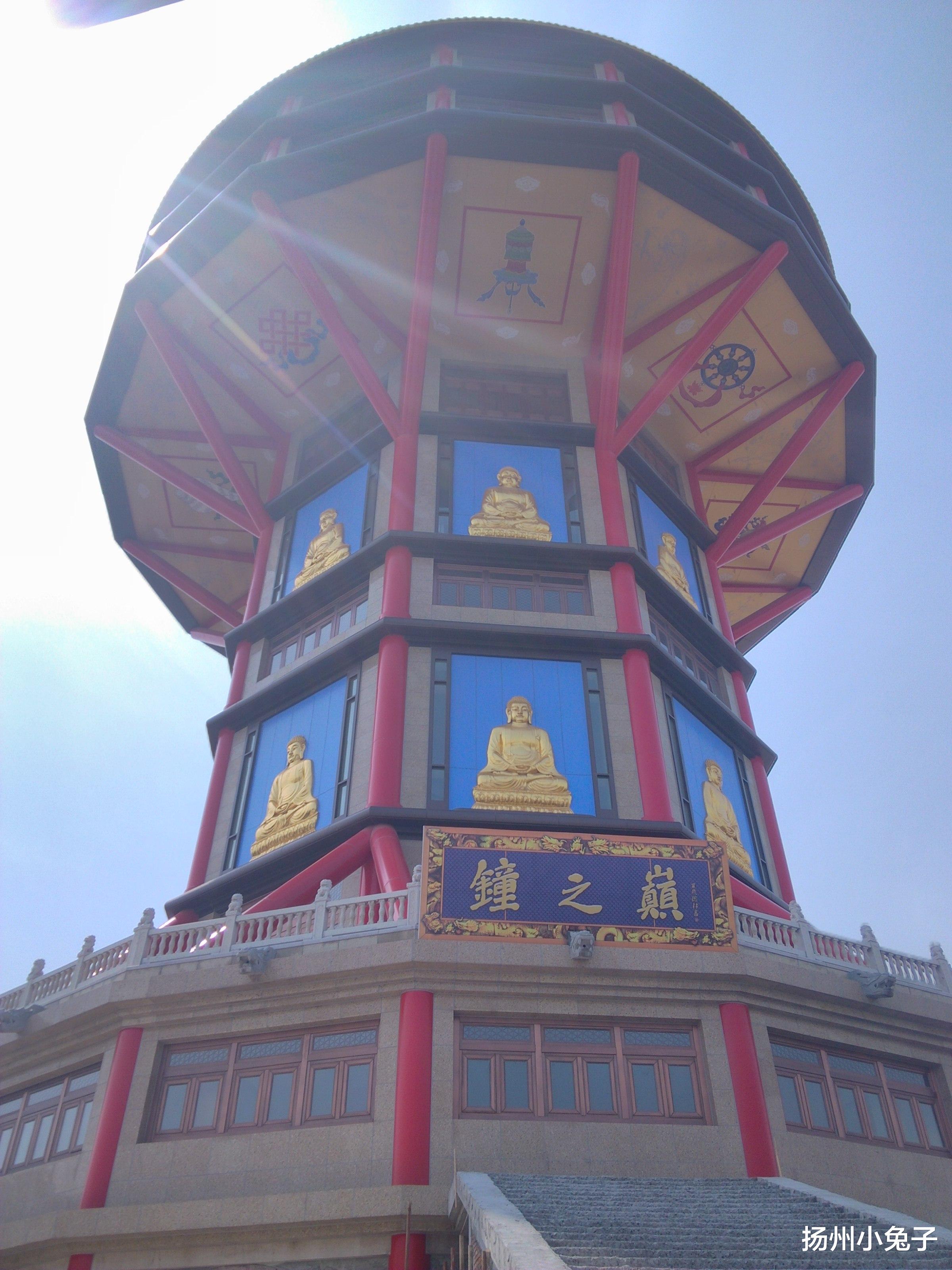 走过那段“引子”,沿中轴线往里走。巨大的钟楼早已经完善了。门前的放生池里,除了几点枯叶,看不到有鱼儿虾儿的踪影。在春天、在初夏可不是这样。那时候满塘睡莲,上面有蜻蜓还有小青蛙,别提多热闹了。