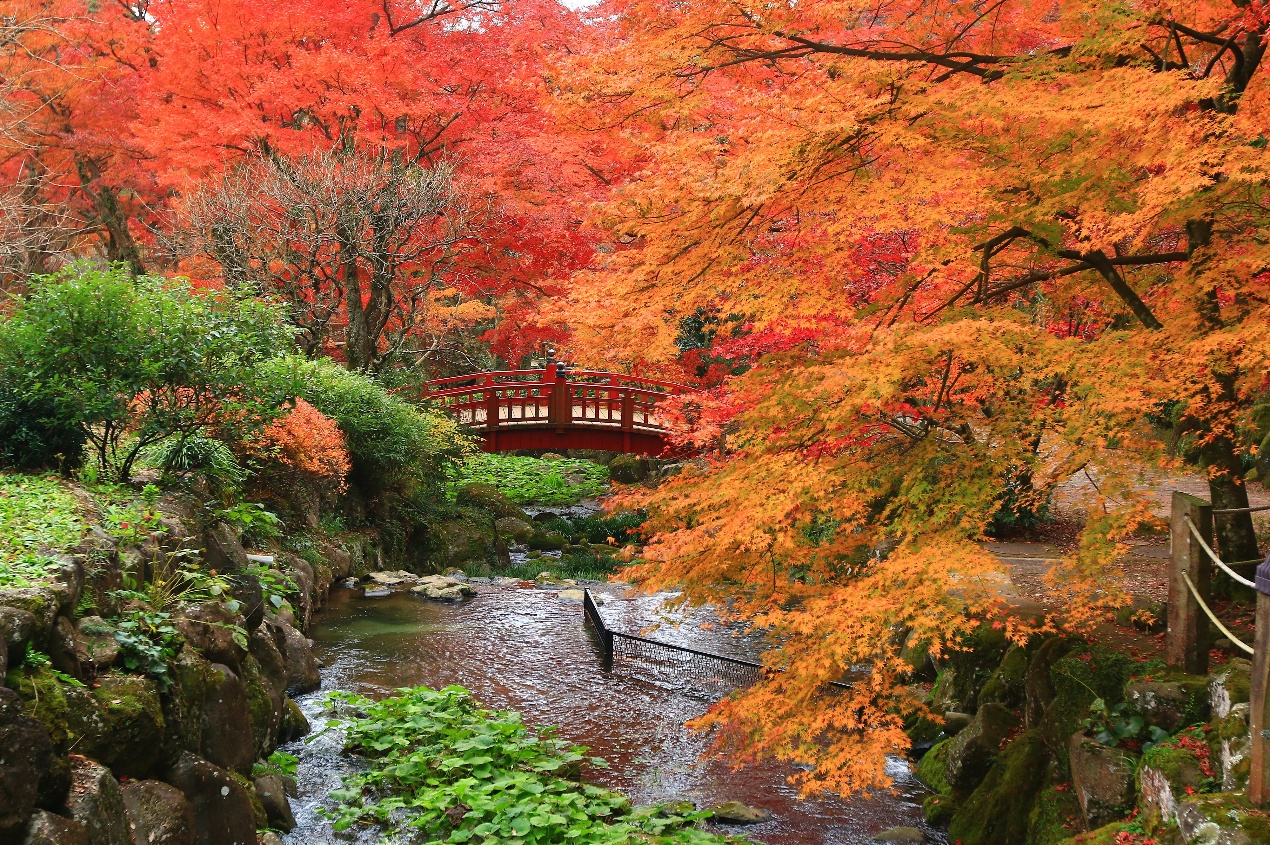 日本南部的九州地区是红叶季的收尾,气候宜人,赏枫时还能泡温泉、看海景。