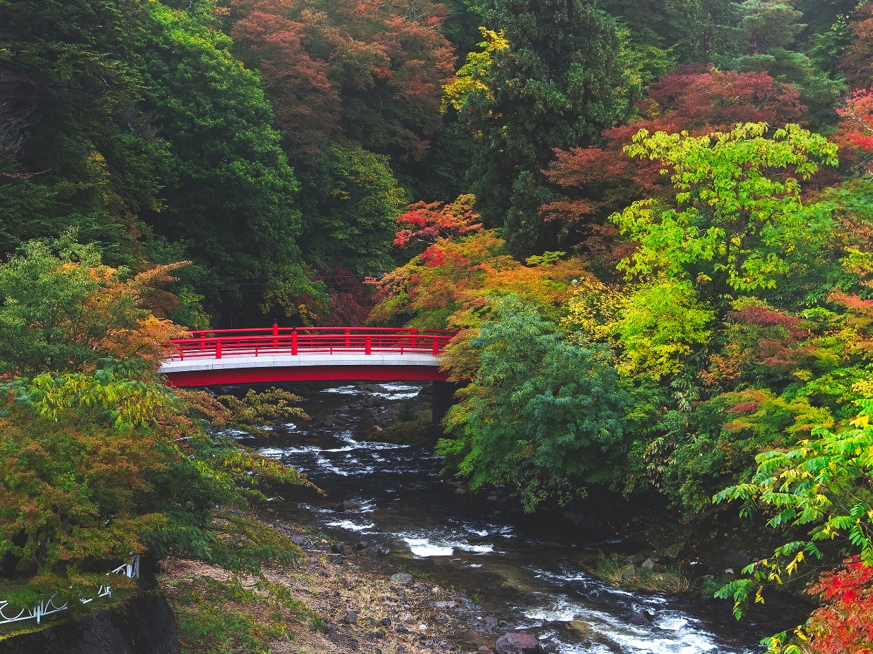 层云峡:火山峡谷地形让这里的红叶色彩浓烈且层次丰富,可搭配温泉体验。
