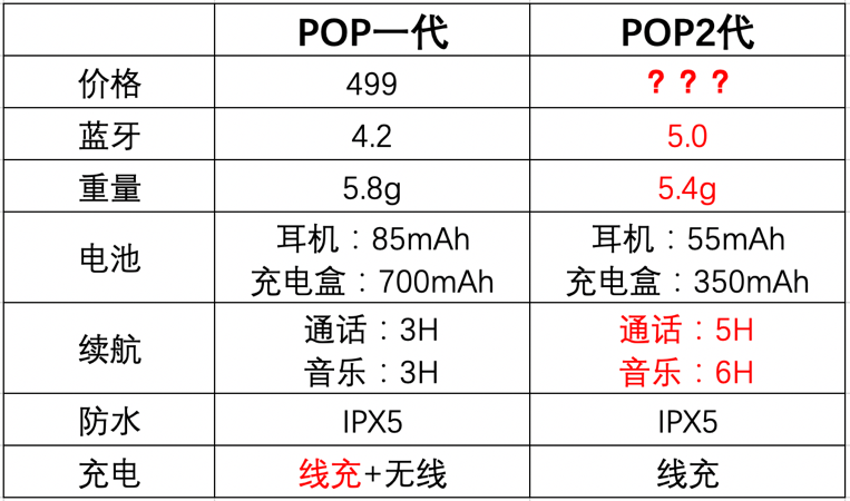 佩戴方面,POP一代的5.8g轻巧重量得到进一步升级,POP2代拥有更轻巧5.4g的重量;POP2代得益于优化后的腔体轮廓设计,在佩戴上比前代更为舒服,依旧觉得有时候竟然会有没戴耳机的错觉;