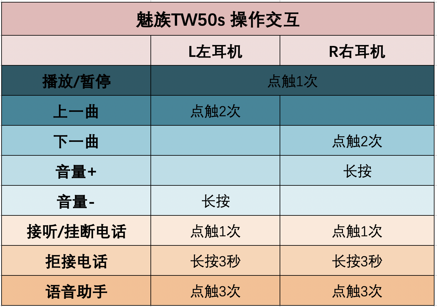 对于触控操作来说,高频应用都是简单的操作例如长按/点触摸一次;进而是切歌分别的交互属于点触2次;低频交互就是语音助手了,点触3次;