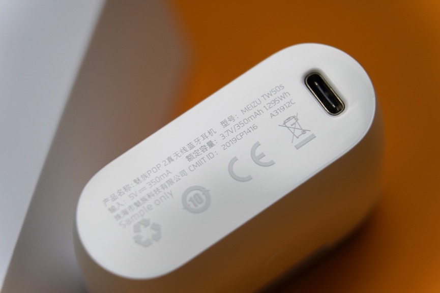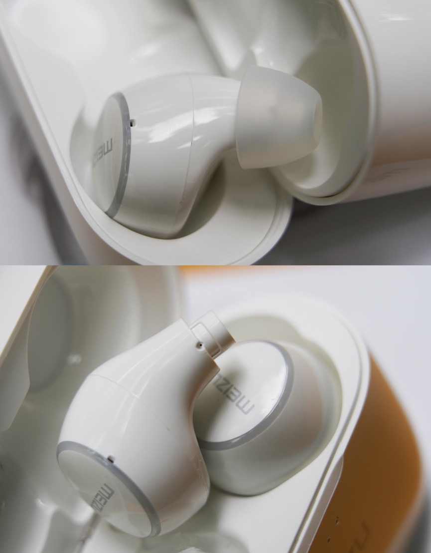 单粒耳机上面有所标志,「meizu TW50s」,所以取出后观察上面标识也可以看出这是POP2代呢。