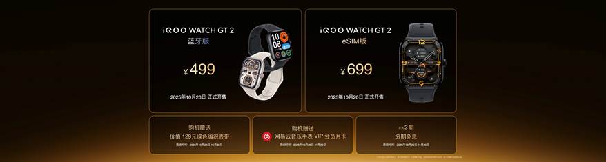 iQOO Pad5e、iQOO WATCH GT 2 和 iQOO TWS 5 的售价分别是 1999 元起、499 元起和 399 元,组合购买更优惠。