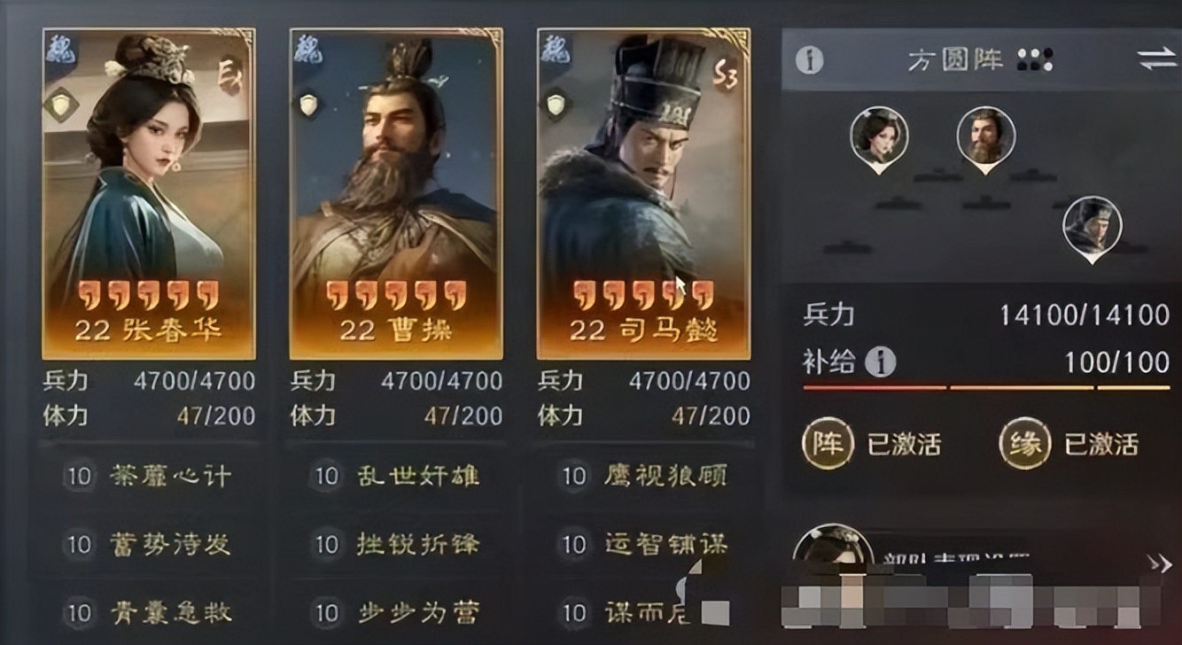 三谋先锋服已开服近一周,随着新武将sp诸葛亮和张春华的加入,S8隆中对赛季的战场队伍竞争变得异常激烈。今天就为大家介绍三队完美共存的阵容,分别是三仙队伍、薪火枪和司马夫妇。