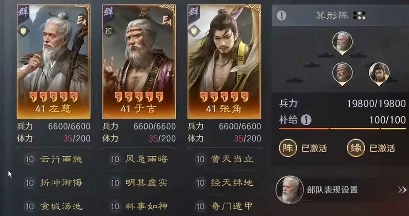 首先是三仙队伍,自左慈出场后,三仙队伍每个赛季都是顶梁柱般的存在。它在开荒后期发力,非常实用,并且在战场中表现稳定且强力。