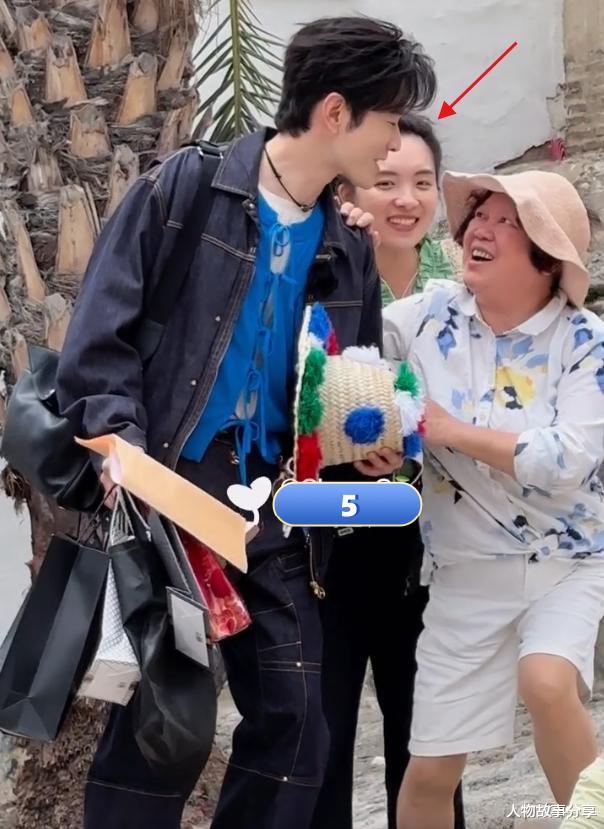 黄晓明还非常贴心,她们录制的地点路面高低不平,走路要十分小心,他看阿姨站的很快,很快稳住了身形,屈膝跟阿姨合影。