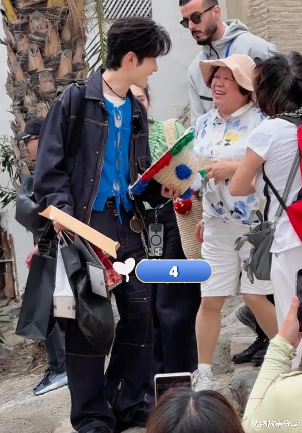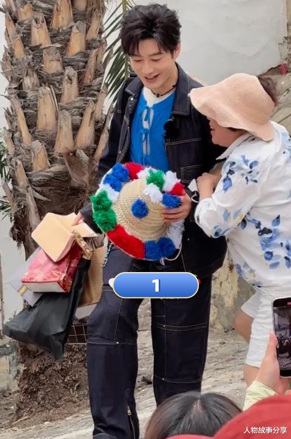 黄晓明手里拿着那么多东西,还要屈膝跟阿姨合影,同时还要注意阿姨的安全,因为阿姨站的地方老高了,一个站不稳摔倒了怎么办。