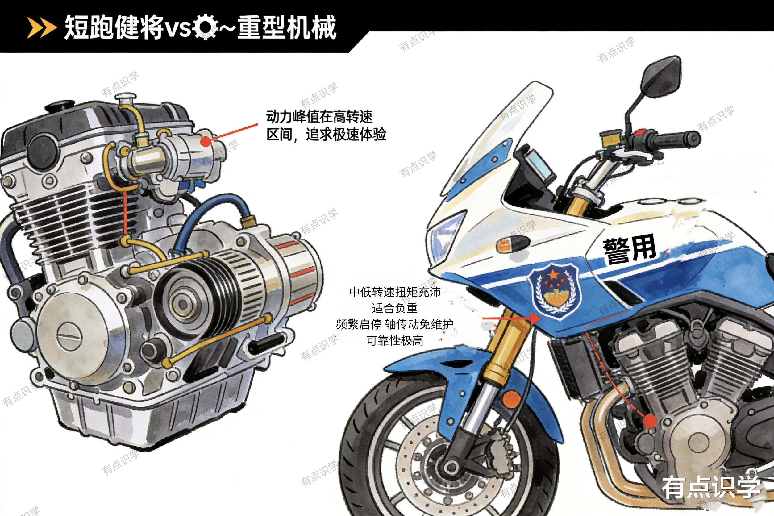 警用摩托:中低转速扭矩充沛,适合负重、频繁启停
