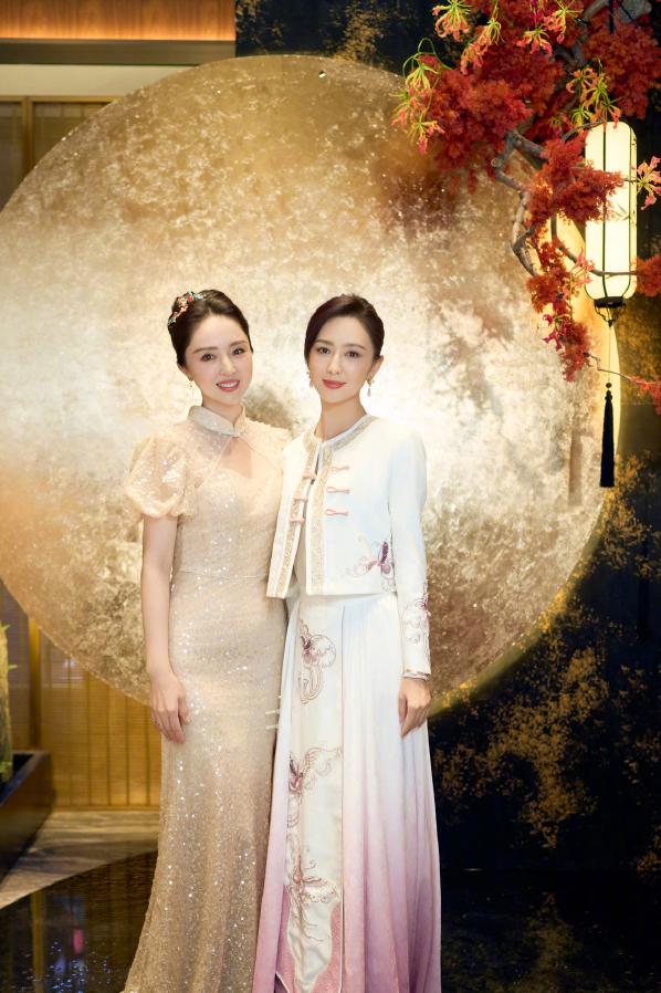 佟丽娅也在发文中晒出自己和董璇的亲密合照,对董璇的婚姻真正的祝福,照片中董璇身穿属于自己的新婚礼服,佟丽娅也穿着优雅的中式礼服,白色的绣花外套,以及秀花礼裙,两人肩并肩站在一起,像亲姐妹一样。