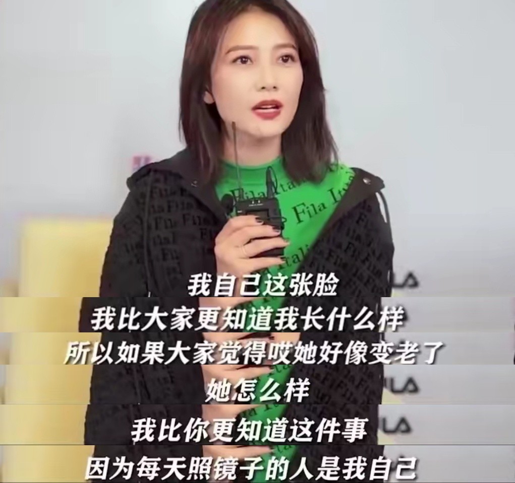“我自己这张脸,我比大家更知道我长什么样,所以大家如果觉得哎她好像变老了,她怎么样,我比你更知道这件事,因为每天照镜子的人是我自己。”