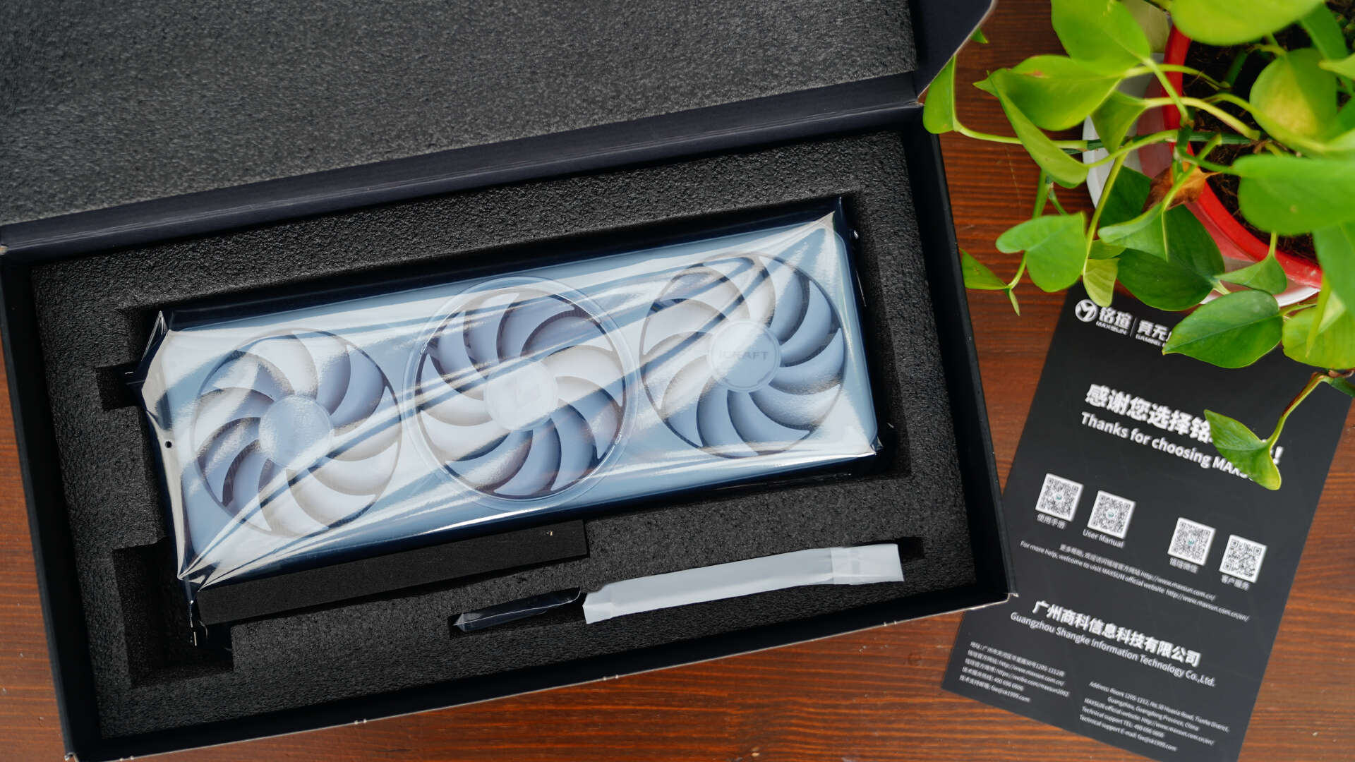 让我么想到的是,铭瑄还贴心的附赠了一个小显卡支架,采用亚克力材质,做的还挺好看,简单拼装就可以用了。