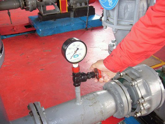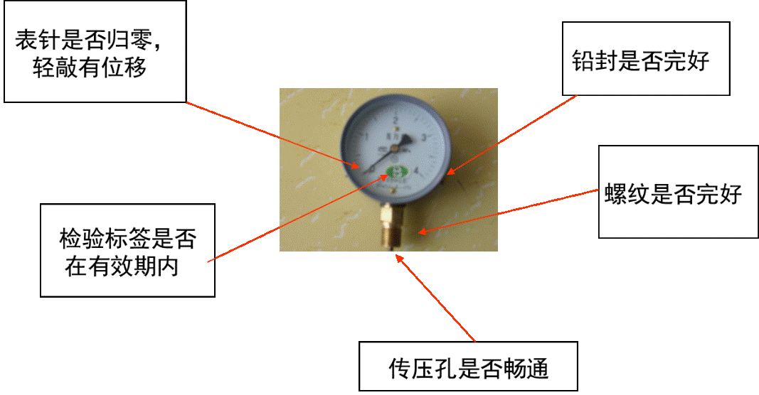 要领:压力表垂直于管线,朝向便于观察。