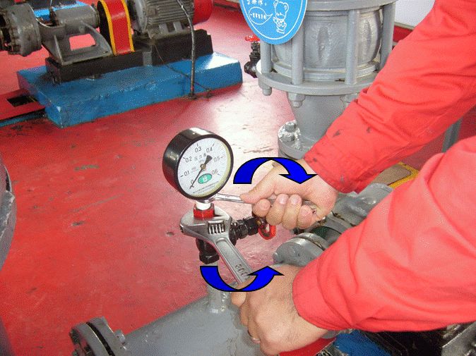 用活动扳手和固定扳手按正确的方向拆卸旧压力表,当卸至压力表与接头特别松动时,用手边拧压力表边晃动,泄掉表内余压。