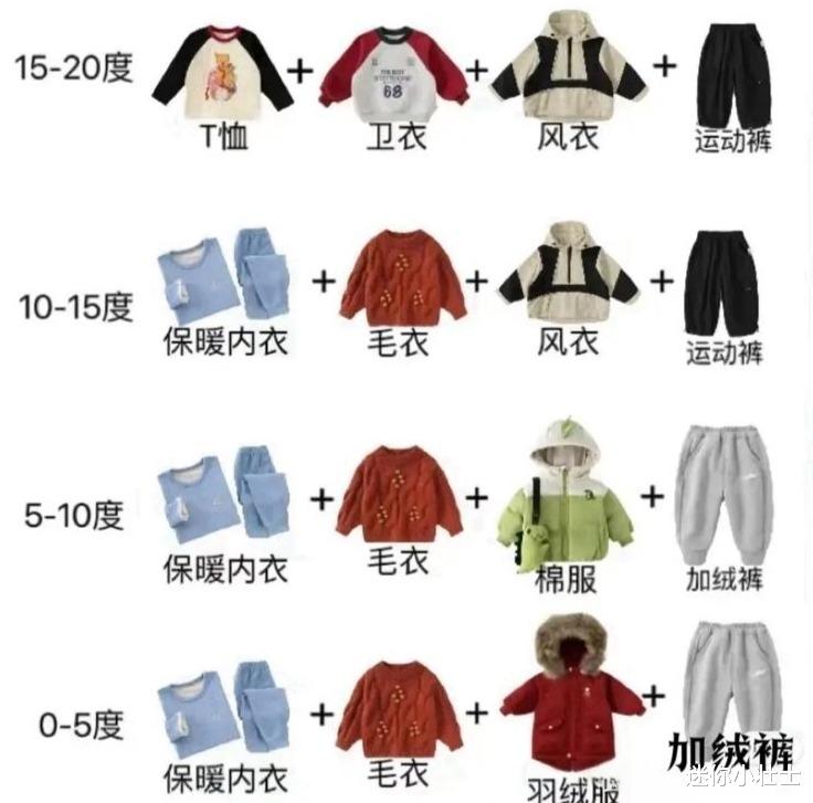 ✅正确做法:学会“洋葱式穿衣法”。内层穿一件纯棉吸汗的贴身衣,中间加件毛衣或马甲,最外层再根据天气配一件防风外套。这样方便随时增减,宝宝热了脱一件,凉了加一件,灵活又舒适。判断宝宝冷不冷,摸摸后颈和背部最准,温热干燥就是刚刚好。