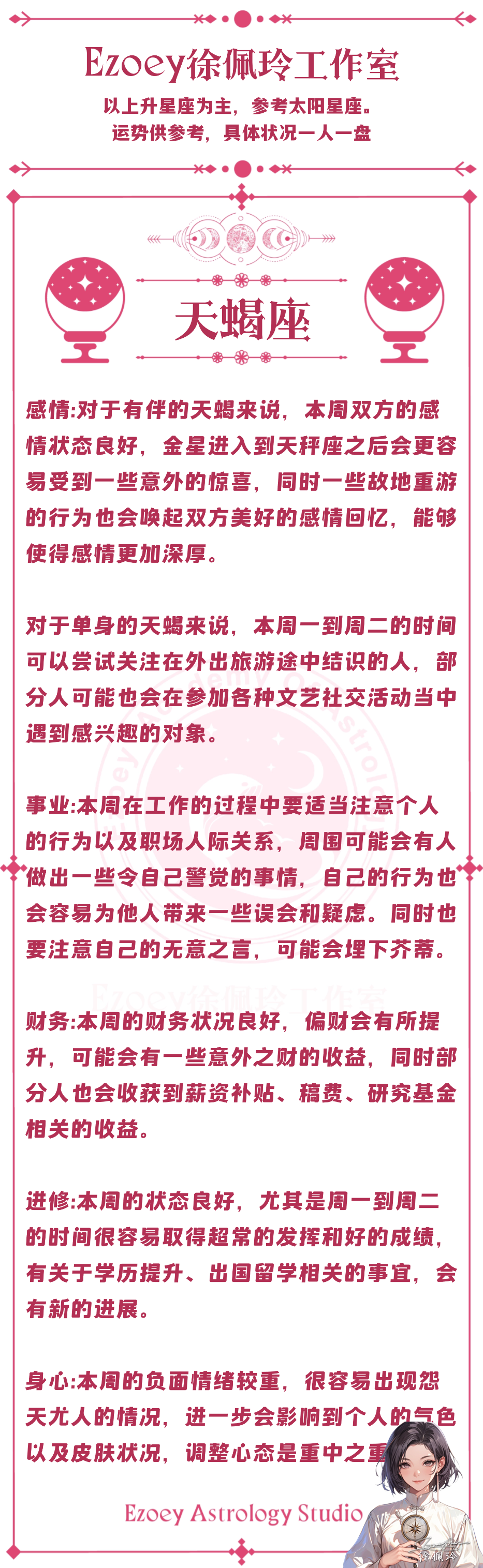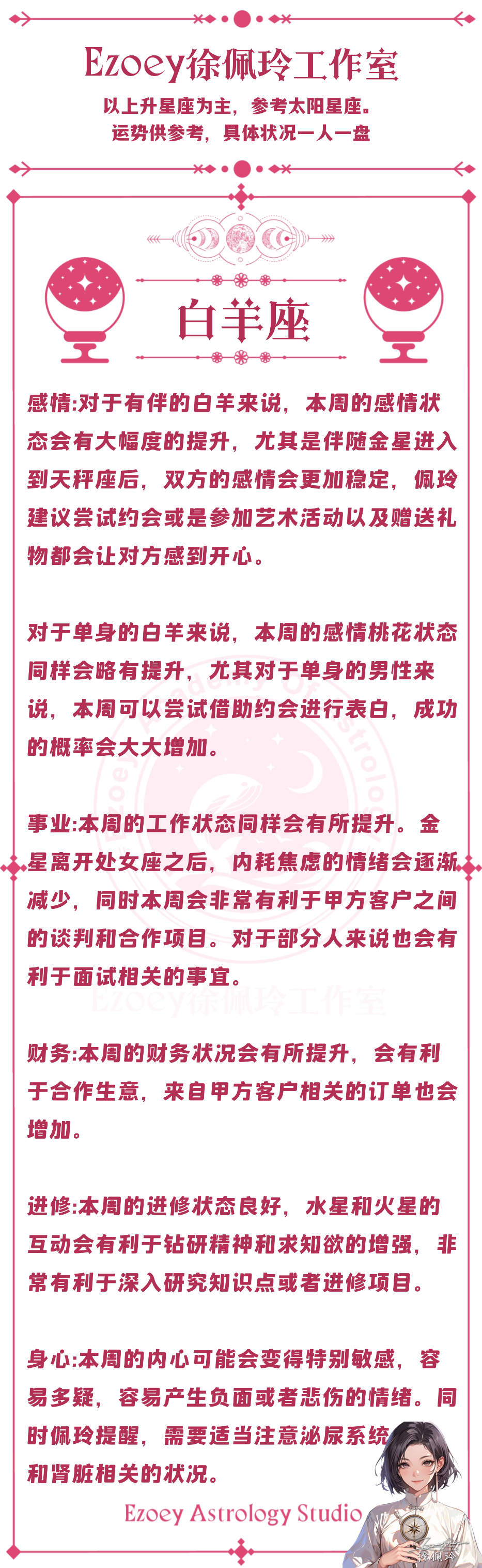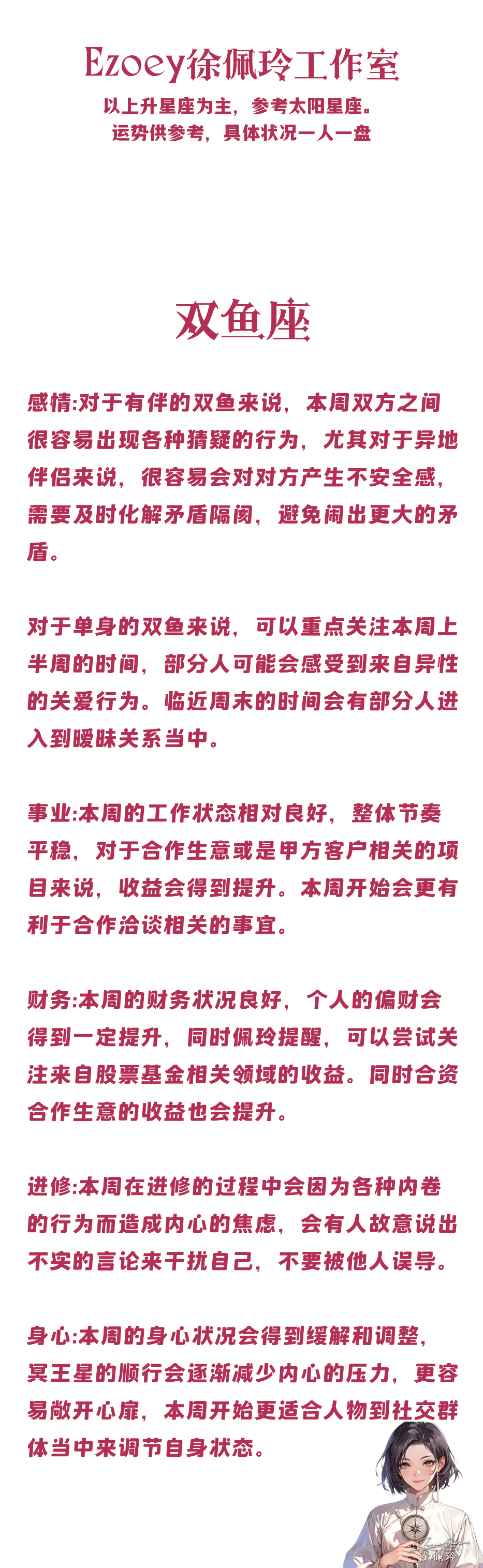 对于个人财富方面来说,附近几天个人的收益、薪资、绩效都会有不同程度的增长,也可以尝试拓展个人的副业,能够找到自己感兴趣的领域。同时有关于甲方客户或是合作生意的收益也会有所增长。