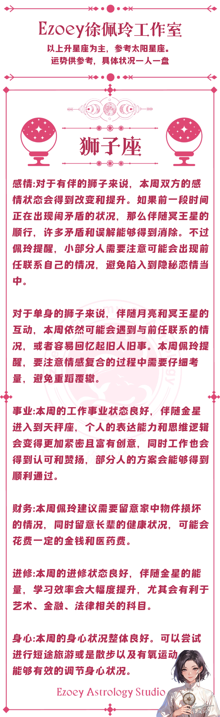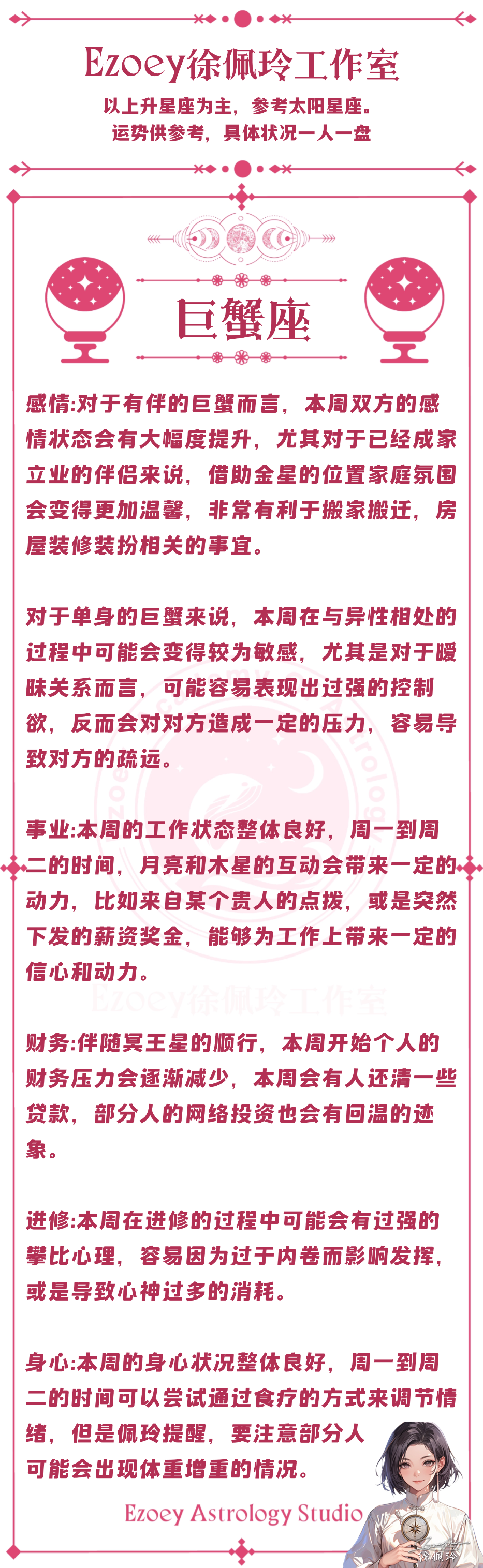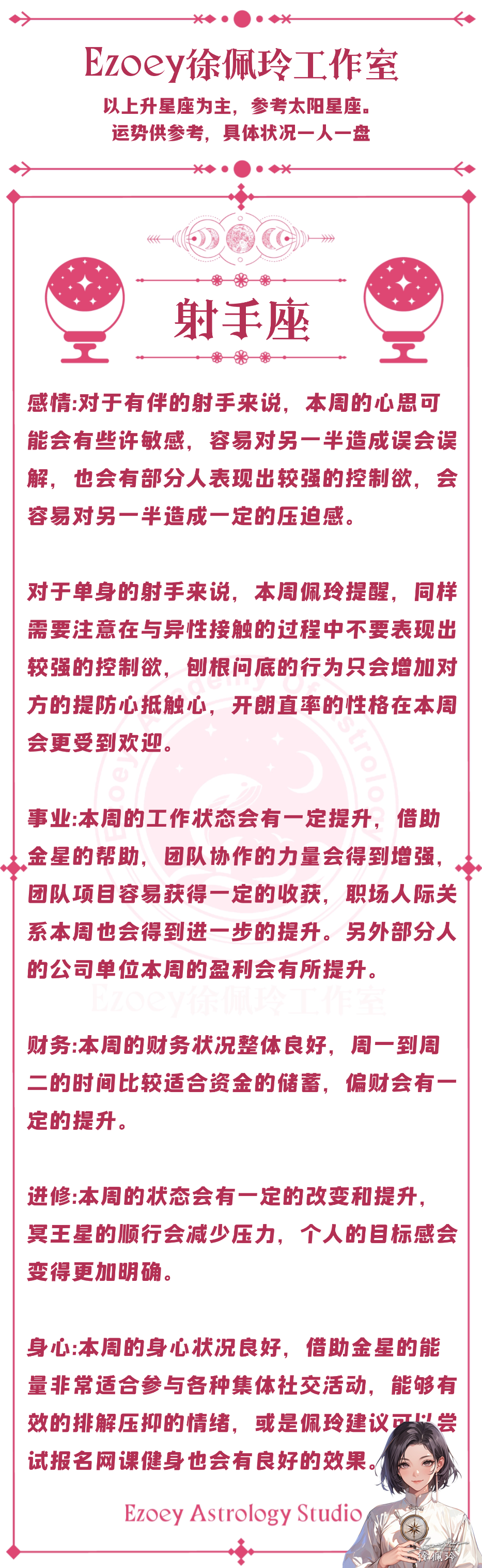 对于个人财富方面来说,附近几天个人的收益、薪资、绩效都会有不同程度的增长,也可以尝试拓展个人的副业,能够找到自己感兴趣的领域。同时有关于甲方客户或是合作生意的收益也会有所增长。